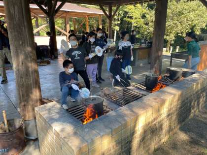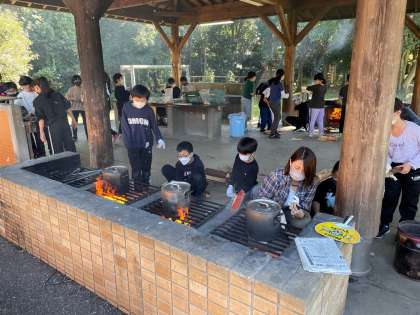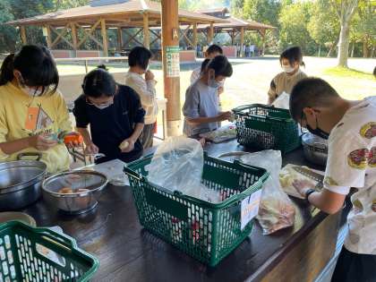 カレーライス作りに挑戦です。班で協力して調理しています!出来上がりが楽しみ!!写真は2組です。