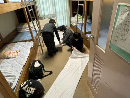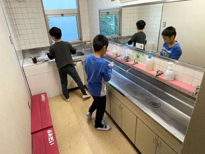 みんなで協力して部屋の片付け、朝の準備です。班で声を掛け合って頑張っています!