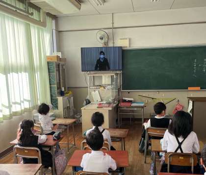 今日の児童朝会は、教頭先生から運動場や芝生が工事等で使えないため、教室や廊下でのケガがないように過ごすためのお話をしてくださいました。
