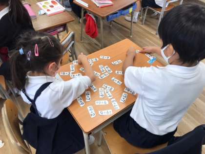 計算カードを使ったゲームをして、楽しく学習できたと思います。子どもたちは、協力したり勝負をしたりする中で、一生懸命計算の練習をしていました。