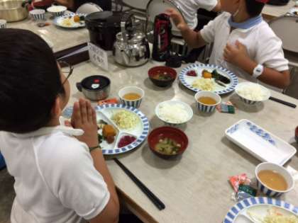本日の午前中の林間学習最大の活動であるオリエンテーリング(山登り)に備えての朝食タイムが始まりました。
