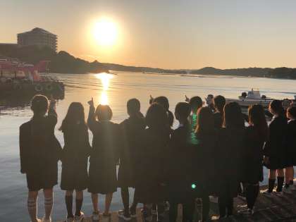 朝のつどいで、ホテルから出て、散歩しました。市全体が国立公園に指定されている志摩市。学校のある城東区とはちがう景色を楽しみました。