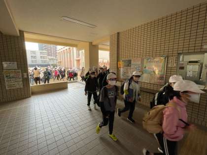 今日は5年生の遠足。交野市にある「くろんど園地」に行きます。