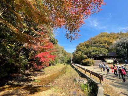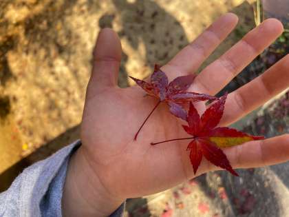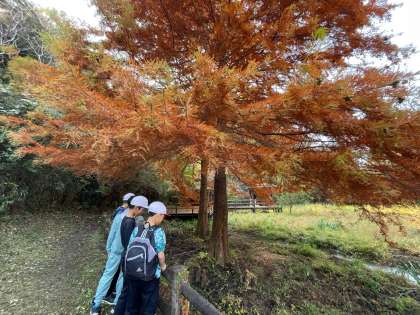 ちょっと休憩です。険しい山道でも子どもたちは元気いっぱい!休憩地点では秋探しに余念がありません。自然の学習、さすが5年生!!