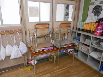 教室では、放送をきっかけに電気を消し廊下から離れ、静かにすることで居場所が分かりにくくすることや、ドアに机などでバリケードを作り、入れないようにするなどの避難訓練を行いました。
