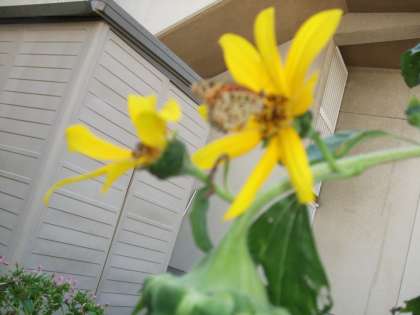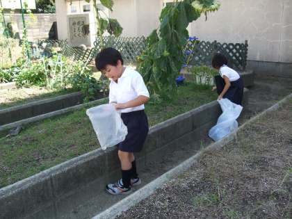 「あ!先生。ちょうちょが いるよ。」の声が。
