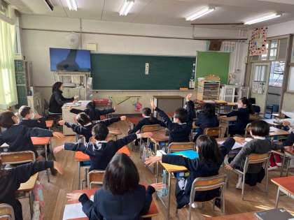 教室の子どもたちは、「絶対〇〇だと思う!」と言いながら、回答を体全体を使って表現しながら楽しんでいました。