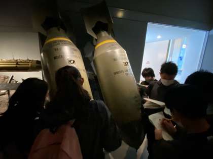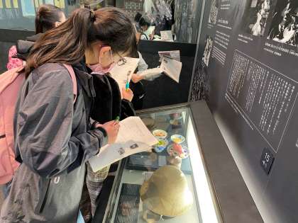 ピース大阪では、大阪であった戦争の被害についてや当時の人々の暮らし、当時のものや写真・手紙があり、戦争についてより深い学びになったと思います。再現した防空壕の狭さ怖さ、兵士の手紙や疎開児童と家族との手紙、爆弾の大きさを見ることで戦争の悲惨さを知り、戦争について・平和についての考えが深まったと思います。