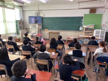 教室では「あー〇〇だ!」という声や「〇〇かなぁ??」と近くの友だちと、クイズの答えを相談している様子もありました。