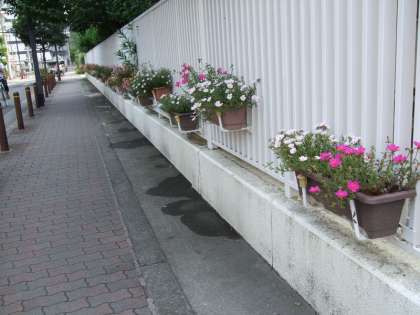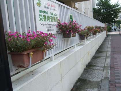 学校の校門横に設置されているプランターの水やりを夏休みの間も