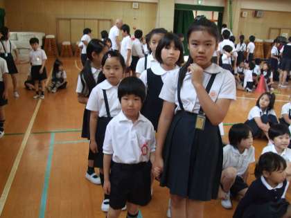 明日は、いよいよ全校遠足です。鶴見緑地まで1年と6年・2年と4年・3年と5年がペアーを組んで歩きます。集会でその練習もしました。雨の心配はありませんが、最近の急な気温の上昇が気がかりです。こまめに水分補給をして活動したいです。