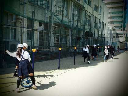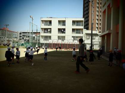 子どもたちは、休み時間になると教室から外へ出かけています。