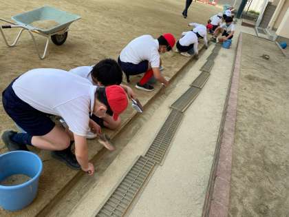 6年間過ごした自分たちの関目小学校を、感慨ひとしおの中、清掃しました。