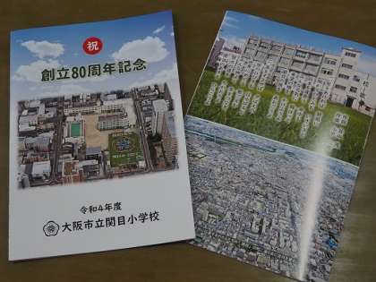 関目小学校の80歳のお誕生日をみんなでお祝いした子だもたちは、80周年の記念品をいただいてとても喜んでいました。