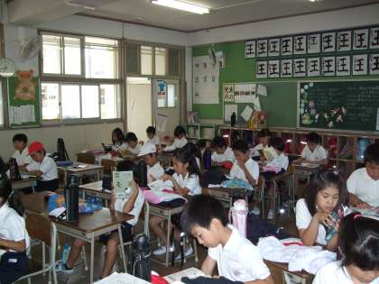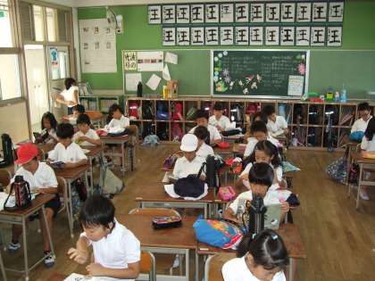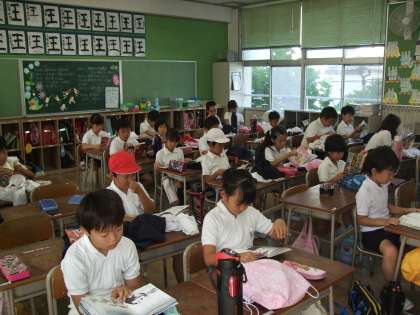 1時間目に運動会の練習があるので、登校後急いで着替えていました。