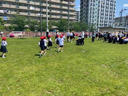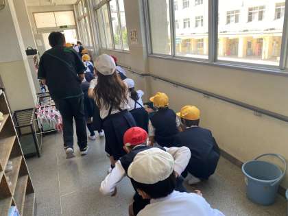 1年生は小学校で初めての避難訓練でしたが、『お・は・し・も』を守って避難することができました。