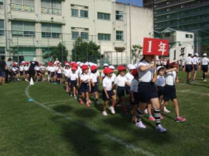 小学校生活初めての運動会の全体練習ですが、1年生もしっかりと