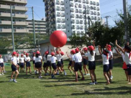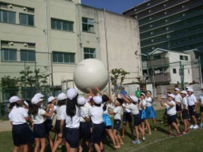 どの学年も一生懸命大玉をおくります。ほかの学年からも