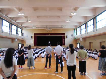 始業式ではみんなしっかり前を向いて校長先生の話をきいていました。