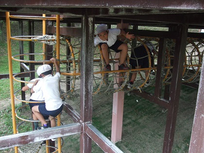 少し早めに現地に到着したので、お城のある公園で遊びました。秘密基地のような作りになっていたので、子どもたちもワクワクしていました(^^)