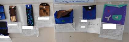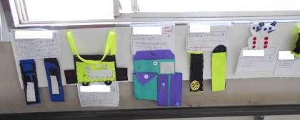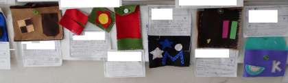 出来上がった作品は5年生の教室前の廊下に飾って「小物作品コンクール」が行われています。