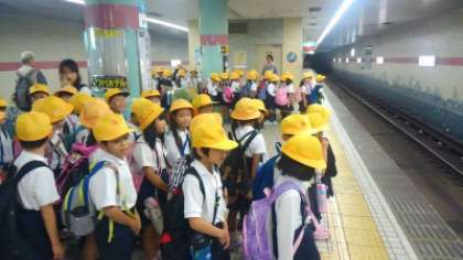 本日もきれいな晴天で絶好の遠足日和です。駅や車内ではきちんとマナーを守り、万博公園に着くことができました。