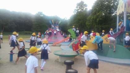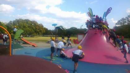 みんなで仲良くお弁当を食べた後は公園内の遊具で遊びました。他校の児童と一緒になりましたが、安全に気を付けて遊ぶことができました。