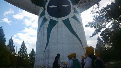 また、太陽の塔の近くまで行きました。あらためて近くで見ると、大きくて迫力があり、子どもたちはびっくりしていました。