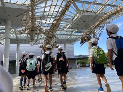 くじらの化石を見た子どもたちはその大きさにとても驚いていました。