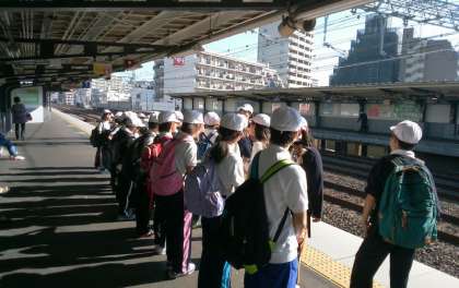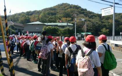 まず京阪電車で私市駅まで向かいましたが、他の学校の同乗となり車内は少し混雑していたものの、マナーをきちんと守り、予定通りに駅に到着しました。