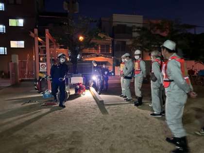 消火器、可搬式ポンプ、簡易担架、心配蘇生などについて、解説、訓練が行われました。