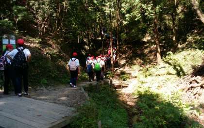さすが高学年の遠足だけあって、歩きごたえのある山道を力強く歩いています。
