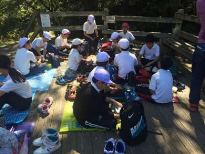 林間学習で山登りを経験しているとは言え、久々の長距離歩行で疲れた体に、保護者の愛情たっぷりのお弁当は、何よりのご馳走でした。