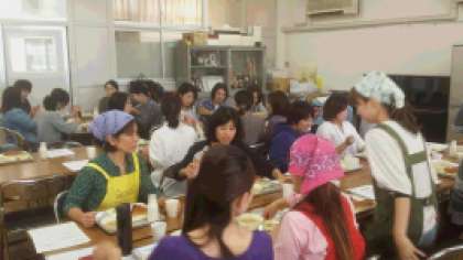 最初に、榎並小学校の栄養教諭から給食に関する講話を聴いたあと、本校給食調理員から給食調理を具体例(お好み焼ができるまで)を挙げて説明がありました。参加された保護者の方も、給食自体は知っていても、食材の選定や調理方法までは気にしたことがない方が多く、1つ1つの話に感嘆されていました。