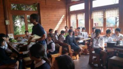 修学旅行最後の食事とあって、みんなで同じ釜ならぬ同じ鉄板を囲みながら、食材の味を十二分に味わっていました。
