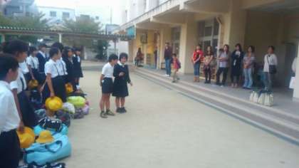 帰校式では、校長先生から今回の6年生の頑張りに対する称賛の言葉のあと、児童代表がお迎えに来られた多くの保護者の方に、無事に帰ってきたことを報告しました。