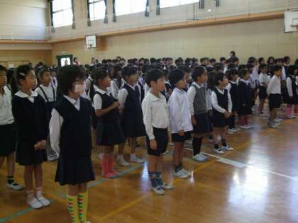 6年生が修学旅行の代休のため、5学年での朝会となりました。