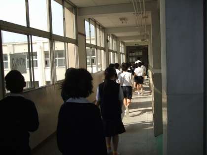 訓練放送の指示に従って、子どもたちも緊張しながら訓練しています。