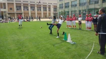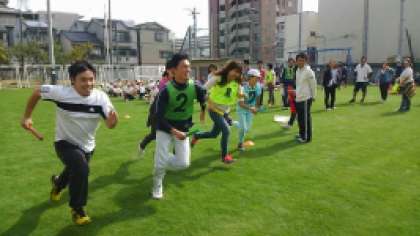 競技以外にも、課外で地域の方が指導されているジュニアソフトボールによる実演つきのクラブ紹介があったり、一番人気?のスリッパ飛ばしがあったりして、最後まで芝生の上で楽しい時間を過ごしました。