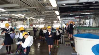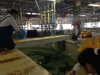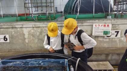 施設内には、実際に魚を育てている様子を見学することができる場所もあり、観賞用として水族館等で見慣れた雰囲気とは違う様子に、少し驚いているようです。