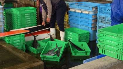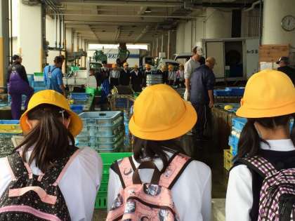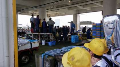 独特の言い回しや声の様子に最初は少し緊張気味のようでしたが、目の前を次々と売り捌かれていく魚の勢いに、本物の迫力を体感することができました。