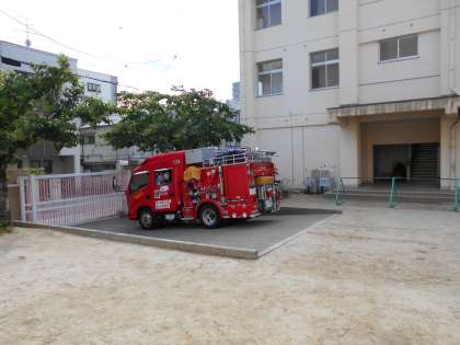 城東消防署の方に講師として来ていただき、AEDの使いかたや、心肺蘇生法について学びました。