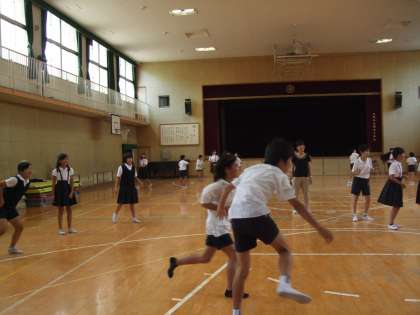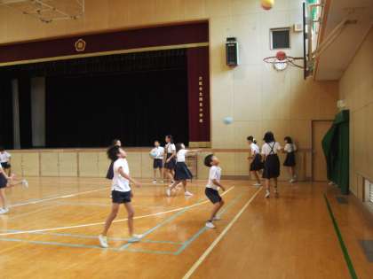 講堂では、ドッジボールやバスケットボールなどで元気に遊んでいます。