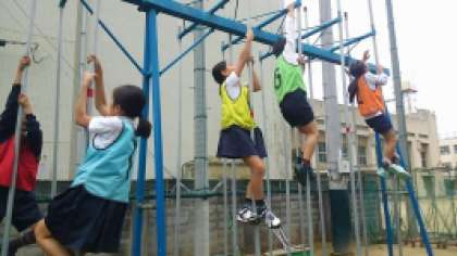 のぼり棒・なわとび・竹馬・ハードル走に全力を出しています。