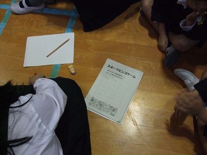 好きなスポーツを選んで紙に書き、集会委員会の発表するスポーツがあれば色をぬっていきます。列がそろえばビンゴになるワクワクするゲームでした。
