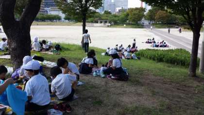 歩いて10分ほどの距離でしたが、まさに“遠足”って感じるほどの疲れようだったし、公園内は同じように遠足で来ている他の団体と日陰の取り合いでしたが、子どもたちは上手に涼しい場所にシートを敷いて、愛情たっぷりのお弁当で体力をフルチャージしていました!!