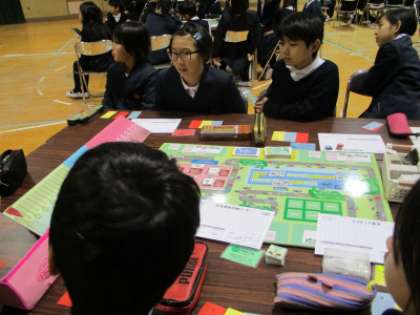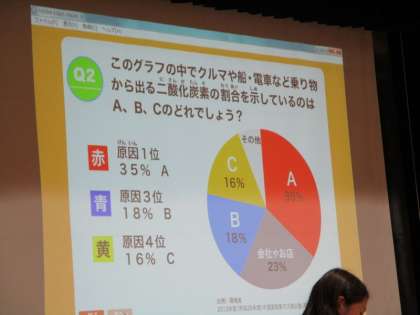グループに分かれ、まずはクイズ形式で地球環境の学習から