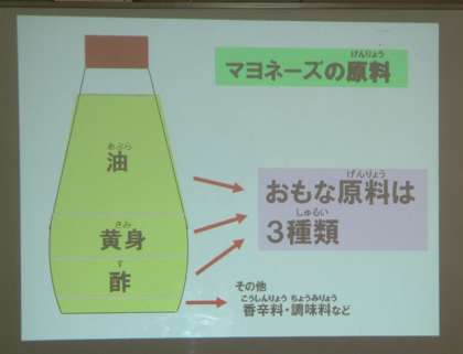 金曜日に、出前授業でマヨネーズについての学習をしました。