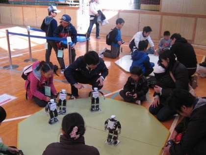 またロボット操縦体験コーナーでは、操縦を少し練習した後に簡単なゲームで遊ぶこともできました。自分の思い通りに動かすことはなかなか難しいようでしたが、コツをつかんでうまく操縦していました。