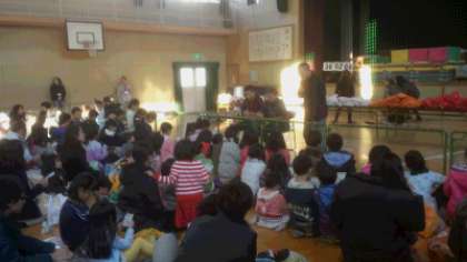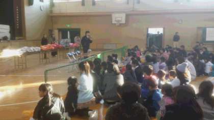 最初に第1部でお世話になった大工大の先生、PTA会長さん、校長先生の話を聞いたあと、ビンゴルーレットが回り出しました。次々と発表される数字に一喜一憂しながら、ビンゴができた順番に賞品受け渡しコーナーに並ぶ子どもたちの顔は、喜びに満ちていました。